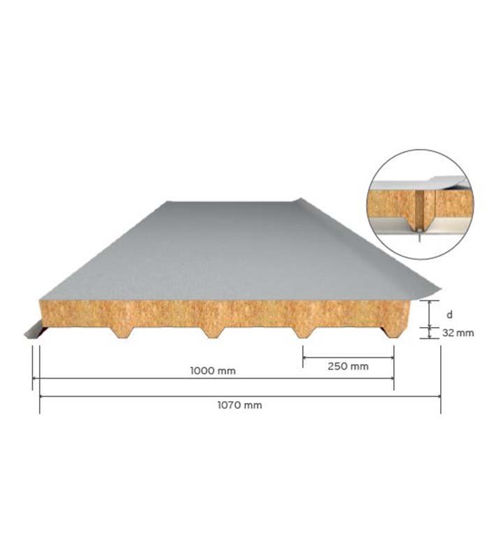 Taş Yünü Yalıtımlı 5 Hadveli Membranlı Çatı Paneli